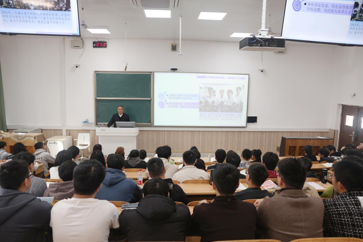 为深入贯彻习近平新时代中国特色社会主义思想、党的二十大精神、习近平总书记在学校思想政治理论课教师座谈会上的重要讲话精神和关于思政课建设的重要指示批示精神,12月6日,学校校长王敦球以“加快建设教育强国、科技强国、人才强国”为题,在雁山校区07518为本科生讲授了一堂有高度、有温度、有深度的《形势与政策》课。