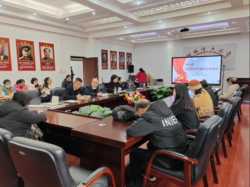 1月5日下午,我们在雁山校区07415会议室开展基层党务干部专题培训暨加强新时代廉洁文化建设”党课,党课由学院党委书记梁英讲授,学院团委书记张劲彪主持。